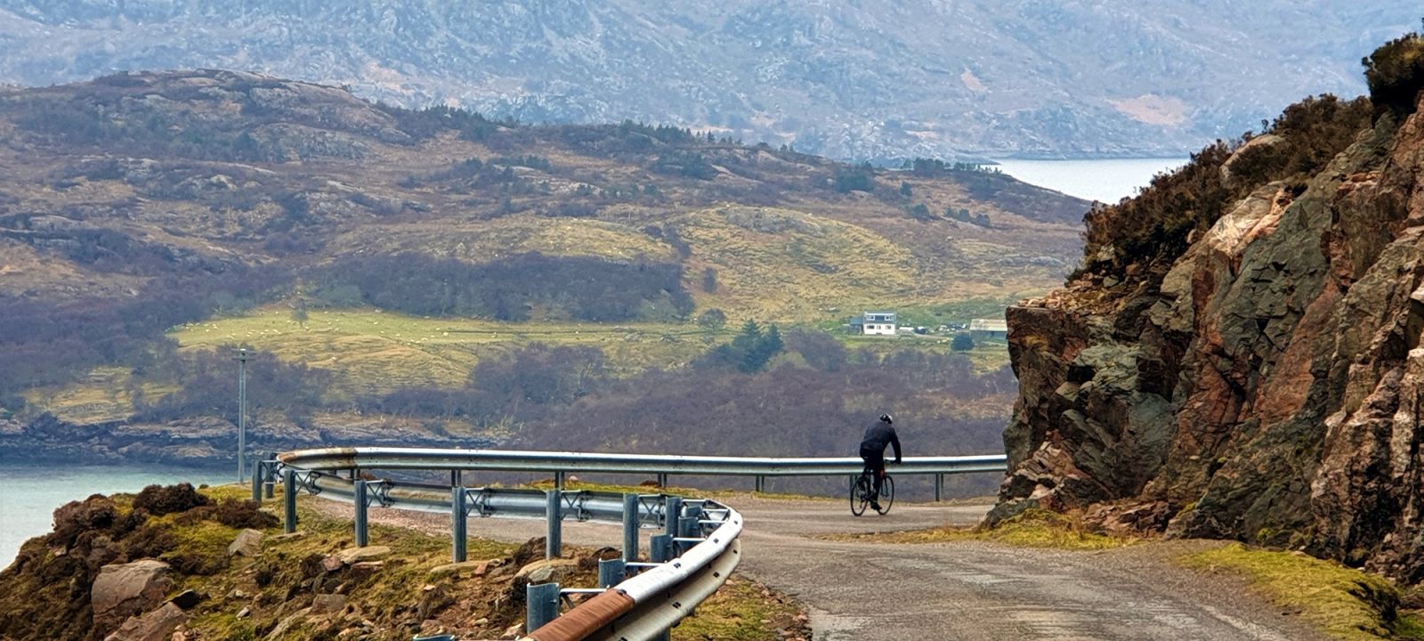 Our Wild West cycling holiday continues as we follow a single track road to Torridon before we take on the ultimate challenge of our cycling holiday riding the UK’s highest tarmac road, Bealach Na Bà. Starting from near sea-level it rises 626m in 9.1km of uphill, reaching 20% at its steepest gradient. From the peak, we will have great views of the Cuillin mountain range across the water on Skye. Over the summit we cycle down thrilling hairpin bends and on to Locharron.